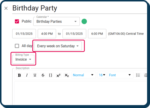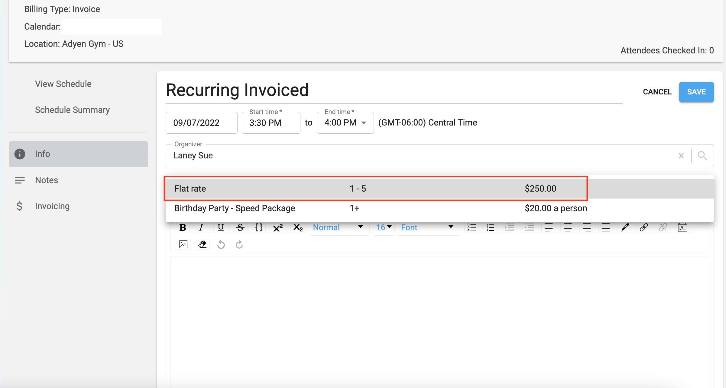 An invoiced event is where a single user pays for the event. Common examples of these would be birthday parties and group events with one host/buyer.