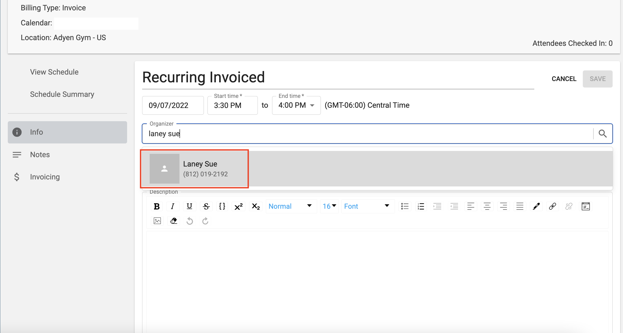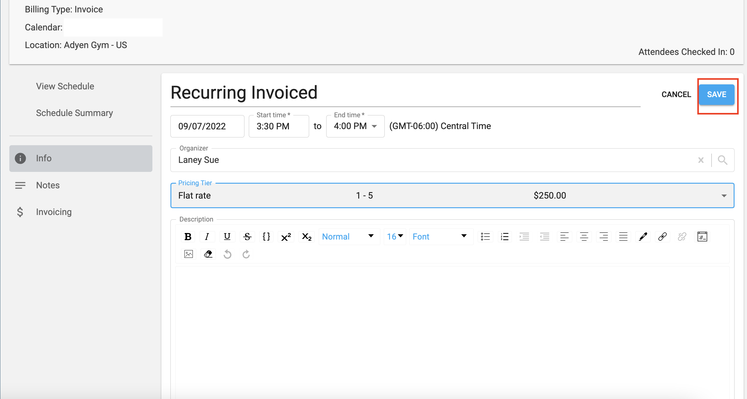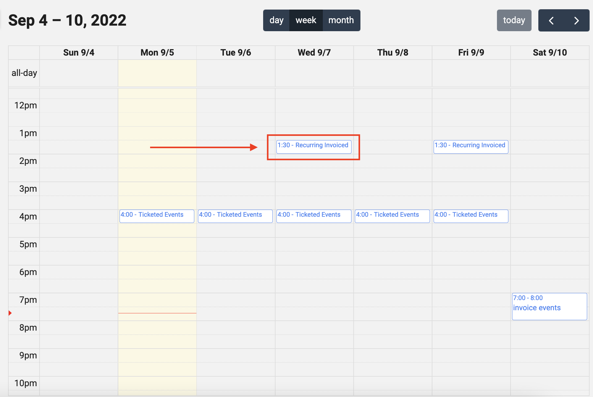- It has to be recurring and NOT a singular event (in the image below, the event repeats every Saturday)