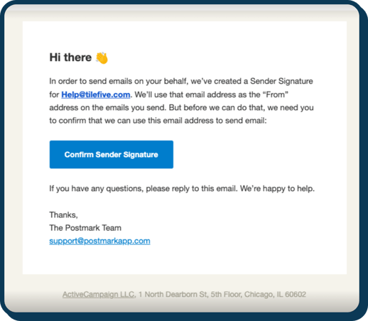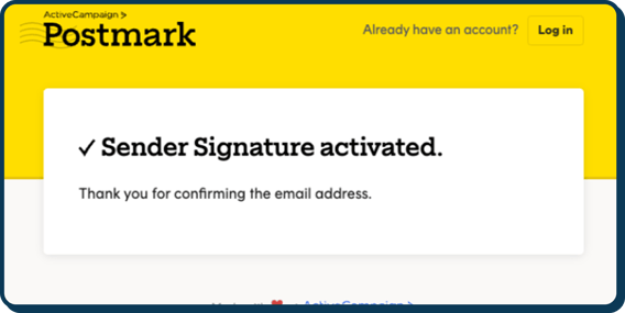 After clicking the blue button to "Confirm Sender Signature", you will be rerouted to the following confirmation page: