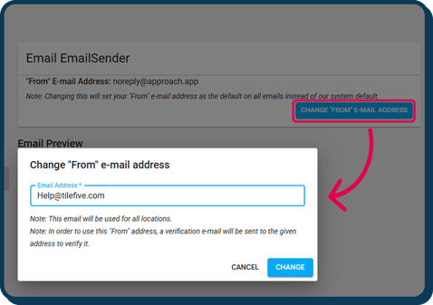the large blue "Change "From" E-mail Adress" button.