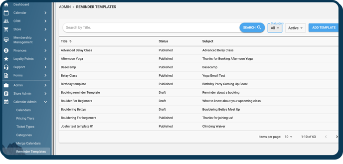 - This will avail the Reminder Templates Page. From this page you can choose a template to edit by clicking on it. You can create new templates by clicking "Add Template".