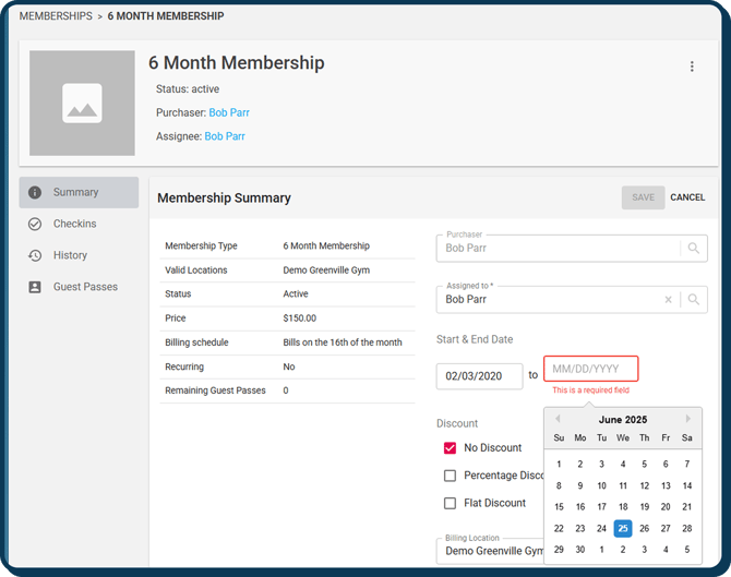 - Want a membership to be active through the 31st but be cancelled on the 1st? set to the 1st.