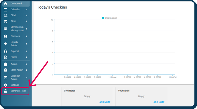 - Log in to the Approach Main App, and click on "MerchantTrack" at the bottom of the left sidebar menu: