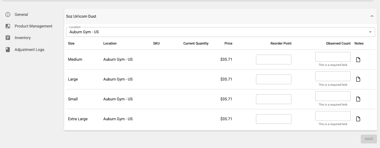 Then click "Product Management" followed by the big blue button, "Modify Product Variants & Locations".